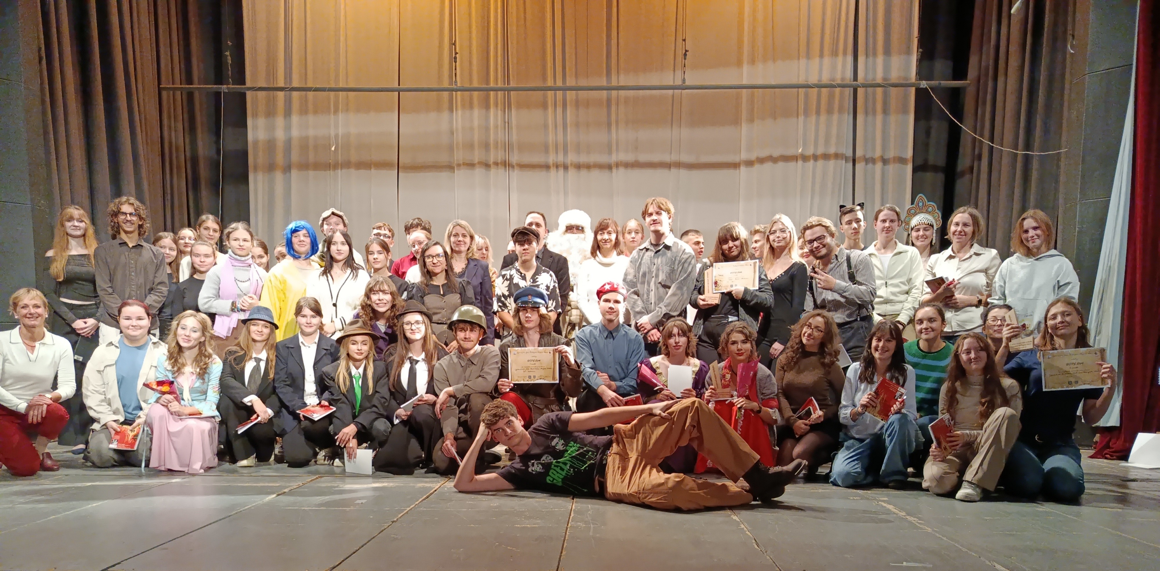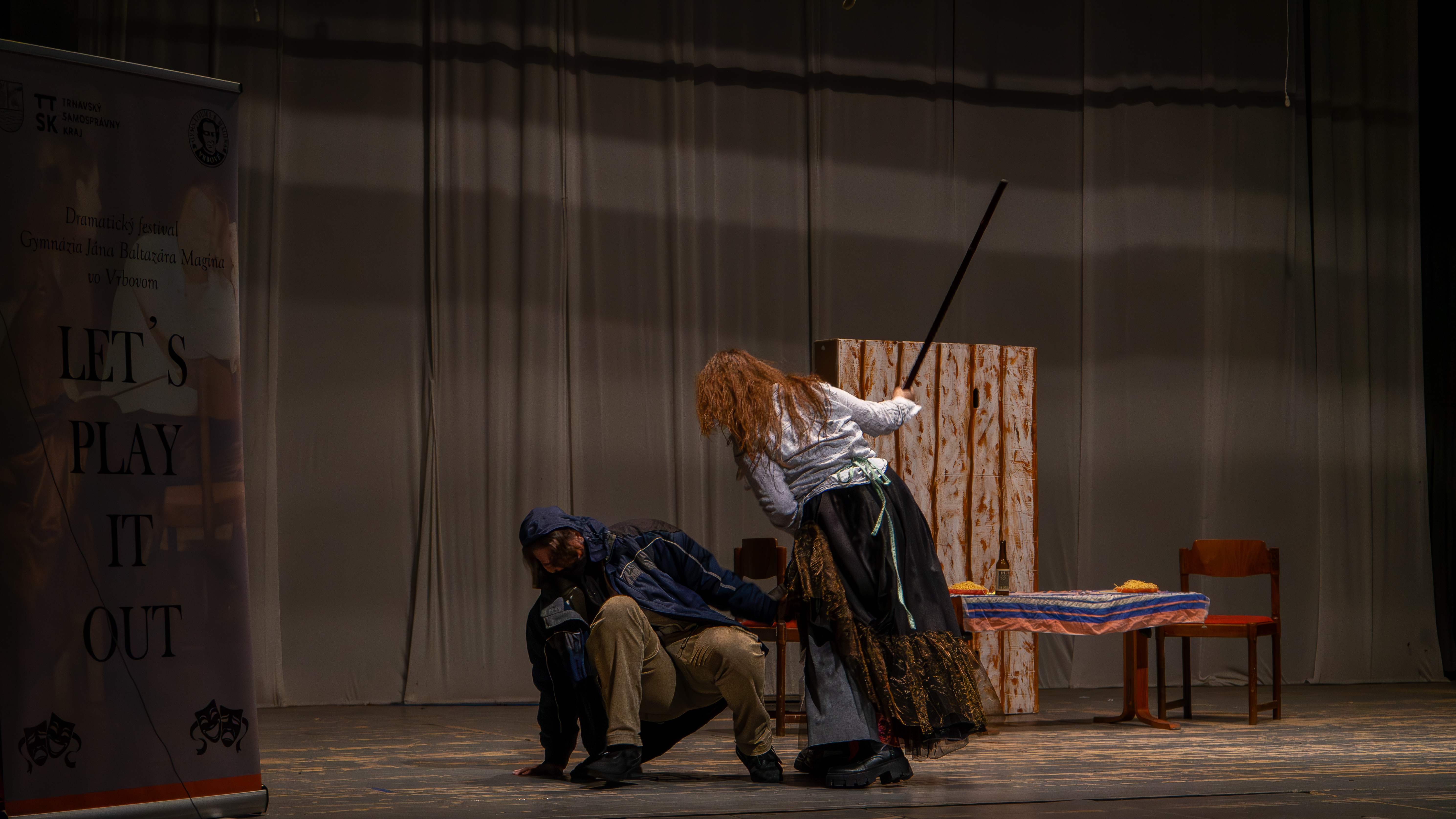 Už 7. ročník nášho obľúbeného festivalu Let’s Play It Out! je za nami — a bol to zážitok! V piatok 24. októbra sa na pódiu kultúrneho domu vo Vrbovom predstavilo 7 tímov z rôznych gymnázií s inscenáciami v angličtine aj ruštine. Témou bola literatúra pre deti a mládež — od Coraline cez Mrázika až po The Twits.
