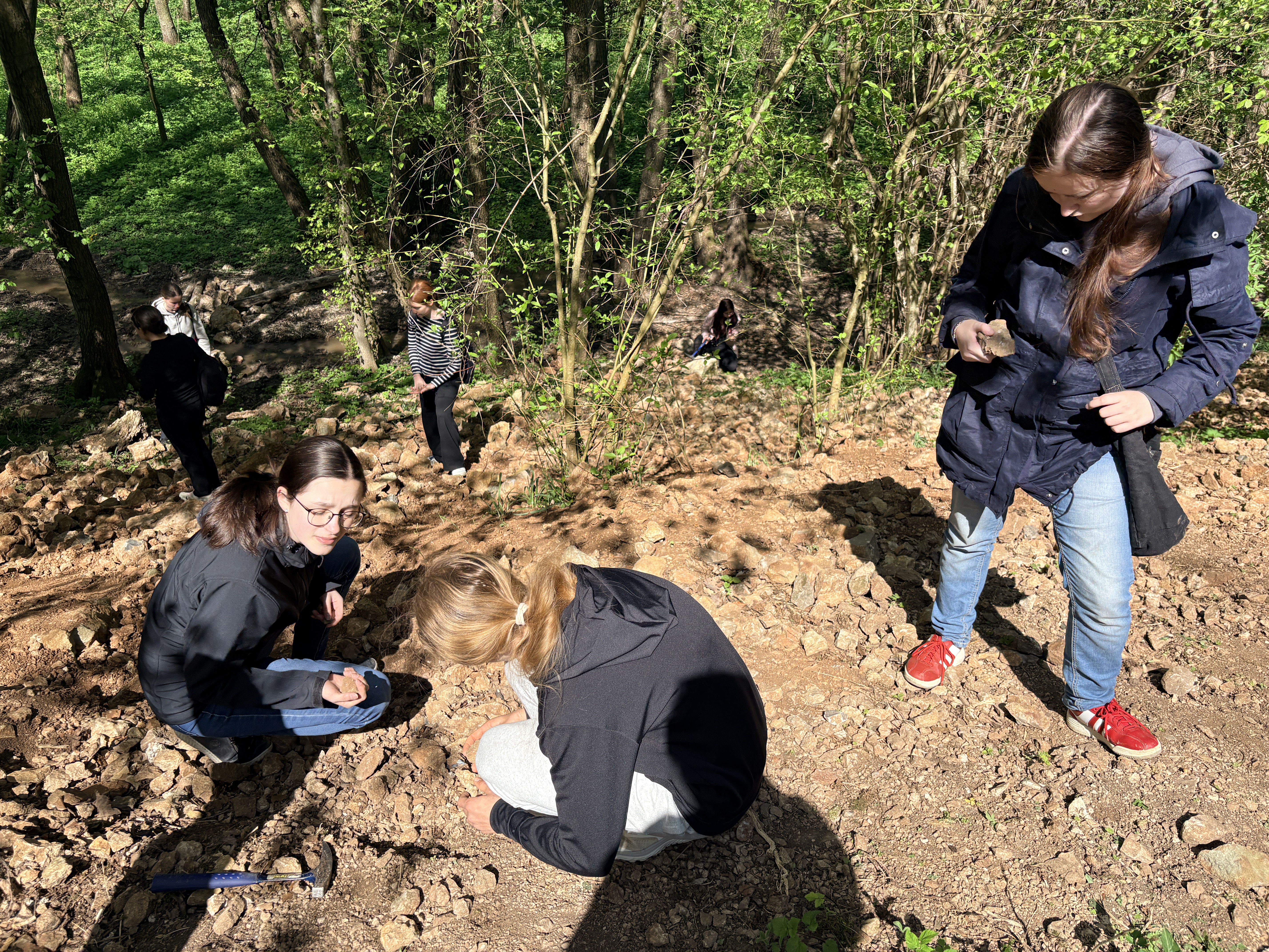 Po prednáške nasledovala prechádzka v okolí, počas ktorej sme pozorovali prírodné prostredie a diskutovali o zaujímavostiach, ktoré sme videli. Následne sme absolvovali krátku interaktívnu prednášku o skamenelinách, ktorá žiakov pripravila na praktickú časť programu. Tá spočívala v hľadaní skamenelín, čo bolo pre mnohých najzaujímavejšou a najzábavnejšou časťou celej exkurzie.