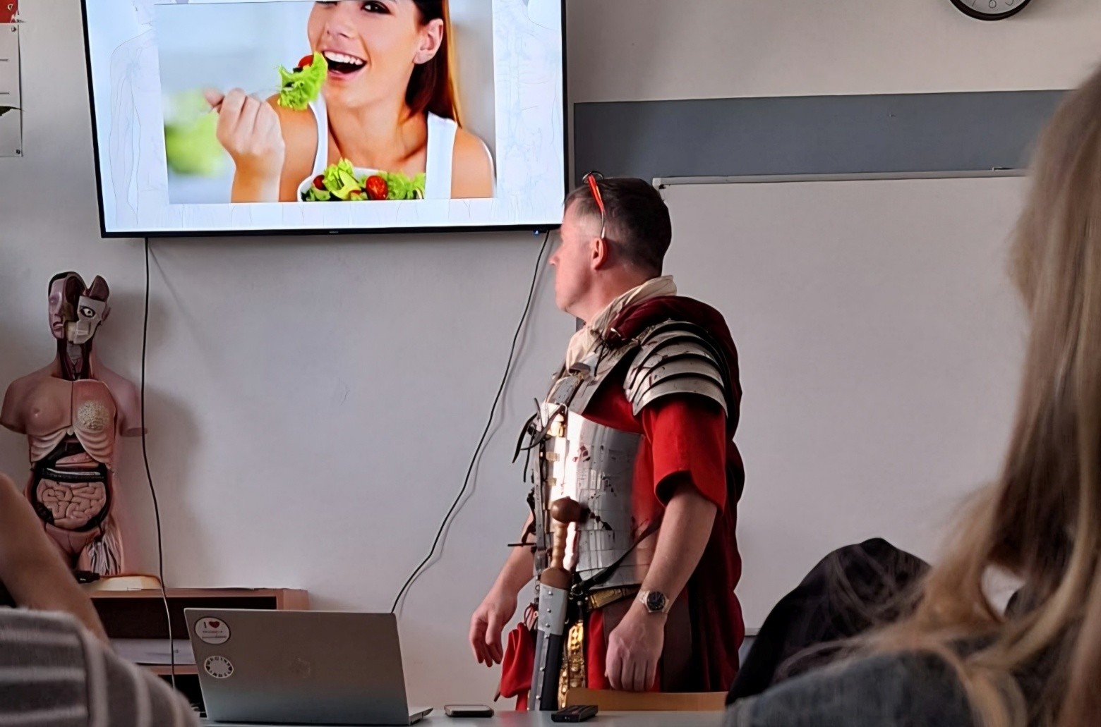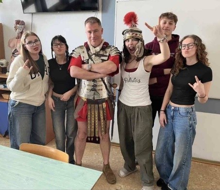 Náš zahraničný kolega prišiel s netradičným návrhom pre našich žiakov. Hovorí sa, že sľuby sa majú plniť, a v našej škole to platí dvojnásobne! Nedávno p. Mike Zavilla uzavrel so svojimi tretiakmi malú stávku: ak všetci do jedného napíšu nadchádzajúci test na čistú jednotku, strávi celý deň v škole (aj cestou do nej a z nej) v tom najbláznivejšom kostýme, aký si viete predstaviť.
